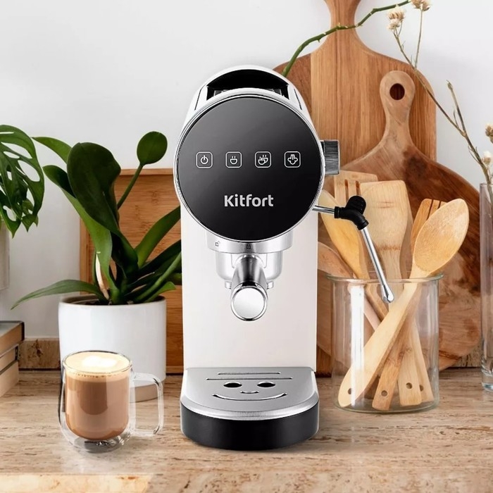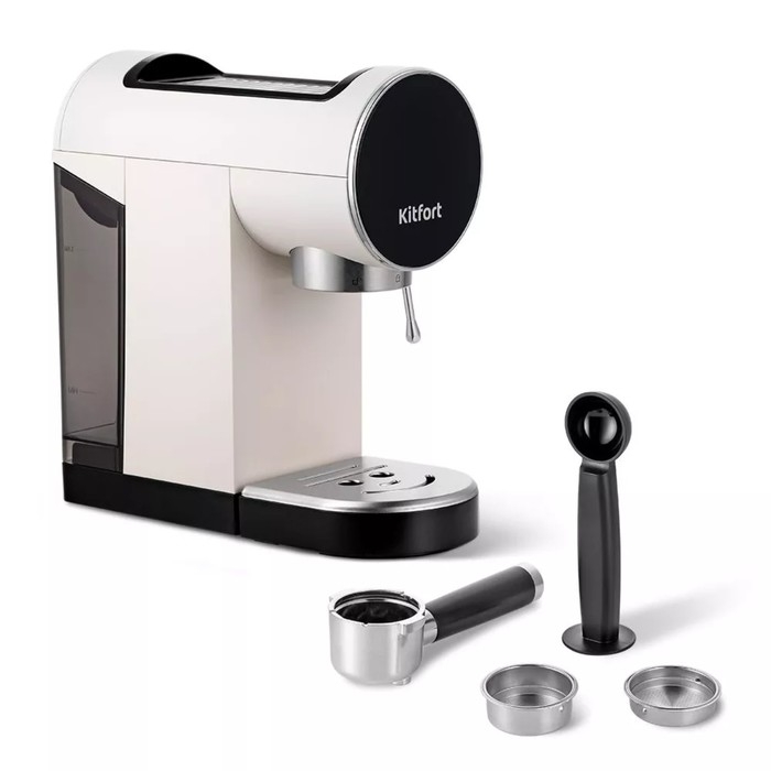 Кофеварка Kitfort КТ-7226, рожковая, 1360 Вт, 0.9 л, капучинатор, бело-чёрная