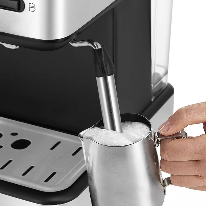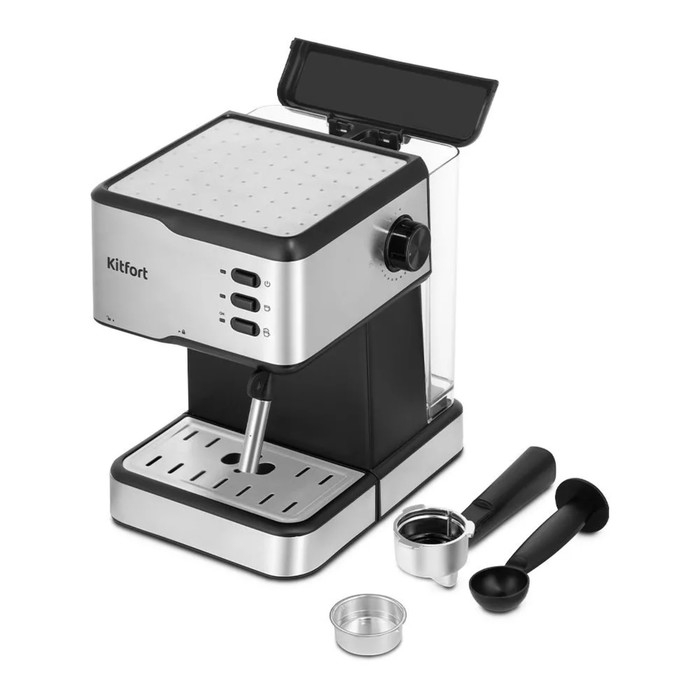 Кофеварка Kitfort КТ-7233, рожковая, 950 Вт, 1.5 л, капучинатор, чёрно-серебристая