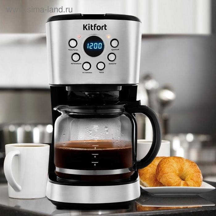 Кофеварка Kitfort KT-728, капельная, 900 Вт, 1.5 л, серебристо-чёрная