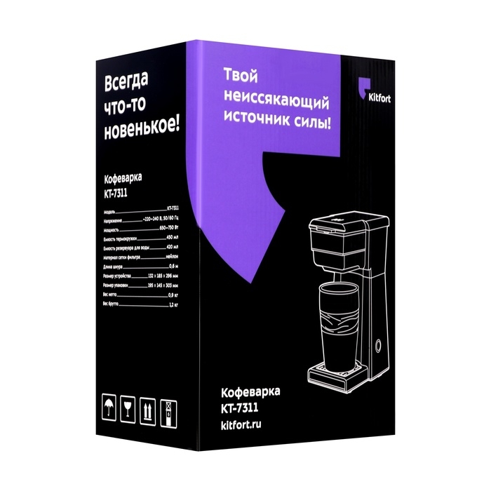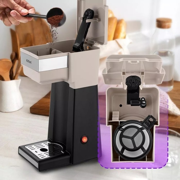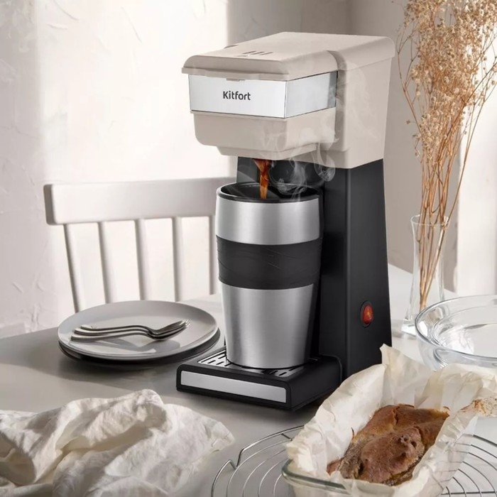 Кофеварка Kitfort КТ-7311, капельная, 750 Вт, 0,42 л, бежево-чёрная