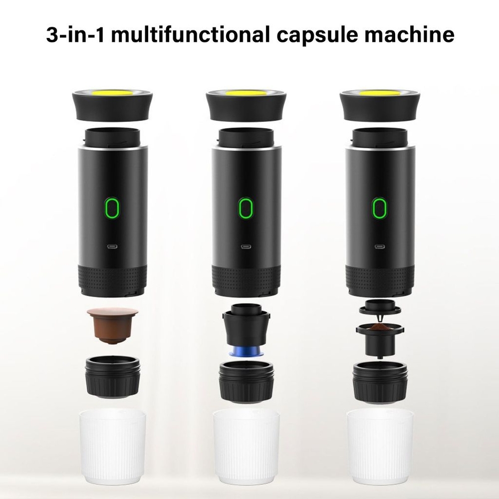 Почувствуйте удобство с нашей беспроводной электрической портативной кофемашиной для эспрессо, разработанной для приготовления вашего любимого эспрессо как из молотого кофе, так и из капсул, идеально подходит для любителей кофе на открытом воздухе.