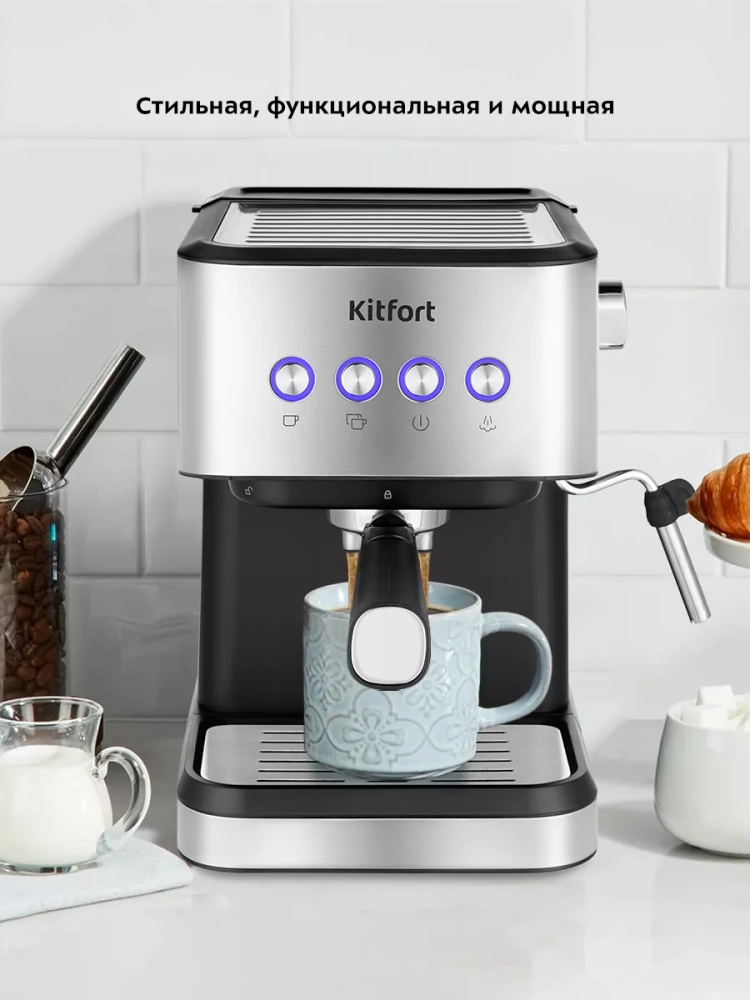 Рожковая кофеварка Китфорт КТ-7140 поможет приготовить кофе эспрессо, капучино или латте, а также множество других видов кофе на ваш вкус.