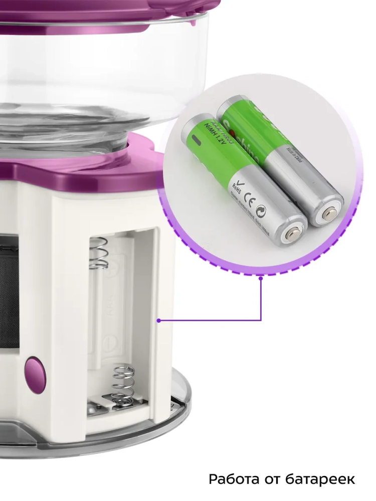 Внутри моторного блока кофеварки есть маленький мотор, который работает от двух батареек типоразмера ААА (батарейки в комплект не входят).