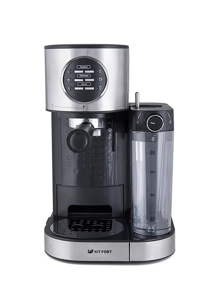 Помповая рожковая автоматическая эспрессо-кофеварка Kitfort КТ-703 поможет приготовить кофе эспрессо, капучино или латте. Тип и объем напитка выбирается нажатием кнопки, а молочная пенка приготовляется во встроенном автоматическом капучинаторе.