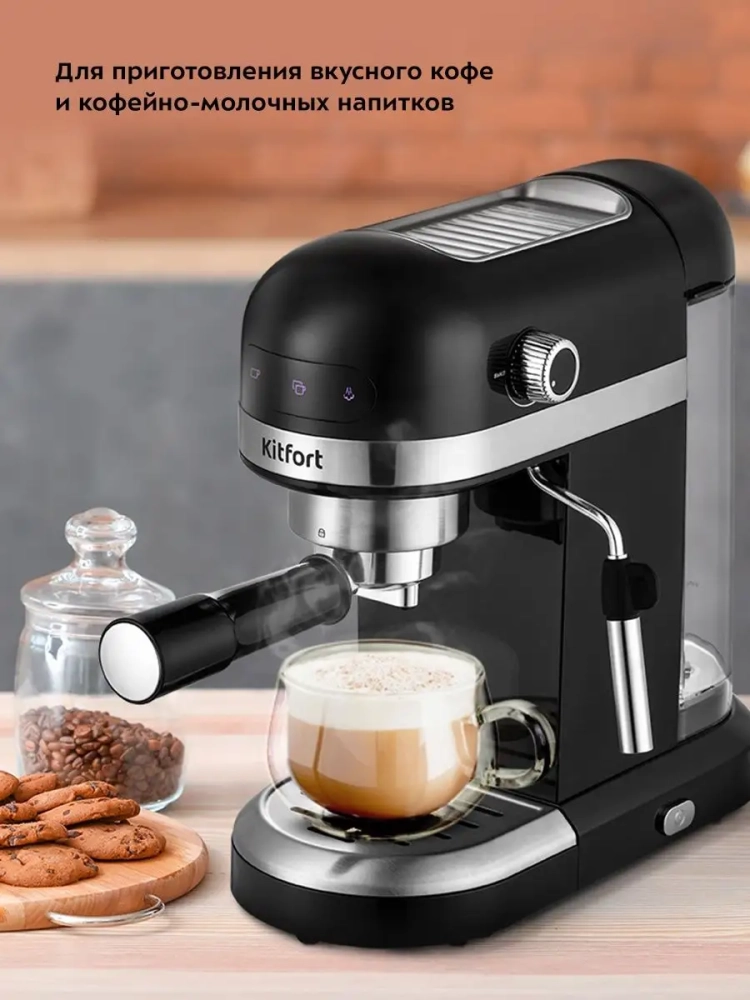 Рожковая кофеварка Китфорт КТ-7115 поможет приготовить кофе эспрессо, капучино или латте, а также множество других видов кофе на ваш вкус. С помощью стимера в рожковой кофеварке вы можете подогреть паром остывший чай или молоко.