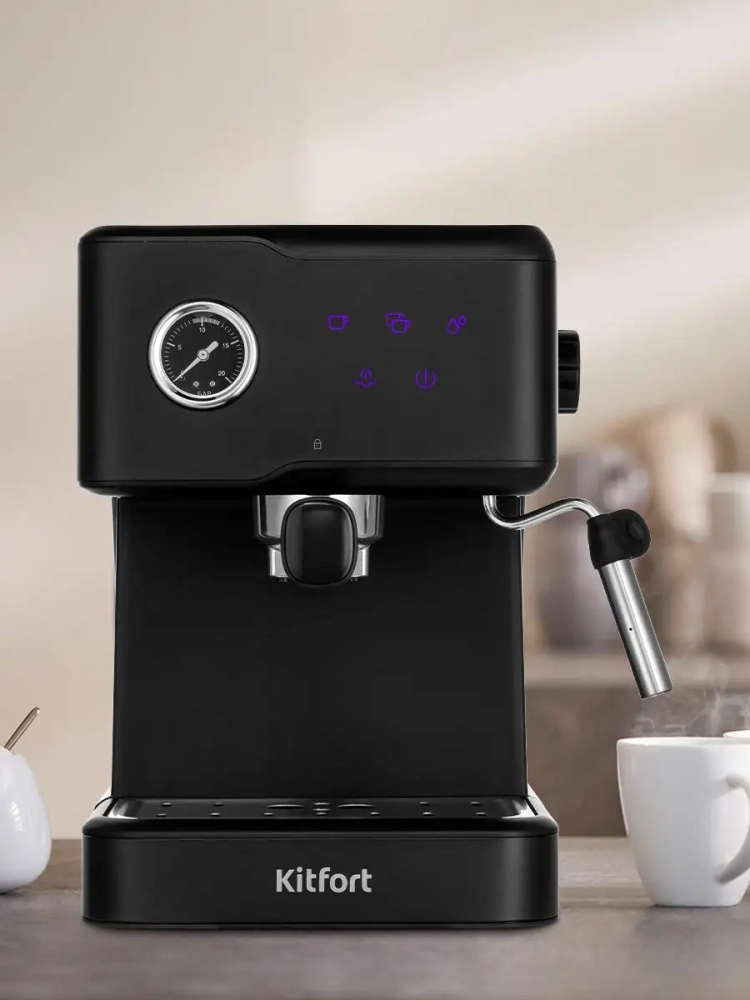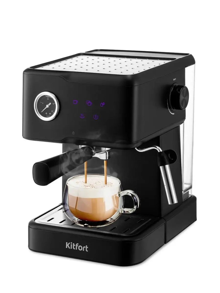 Рожковая кофеварка Kitfort КТ-7124 поможет приготовить кофе эспрессо, капучино или латте, а также множество других видов кофе на ваш вкус. С помощью рожковой кофеварки вы можете подогреть паром остывший чай или молоко.