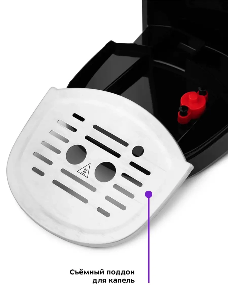 Металлический фильтр с лазерным нанесением отверстий долговечен и не требует использования каких-либо расходующихся частей. Кофеварка оснащена съемным резервуаром для воды.
