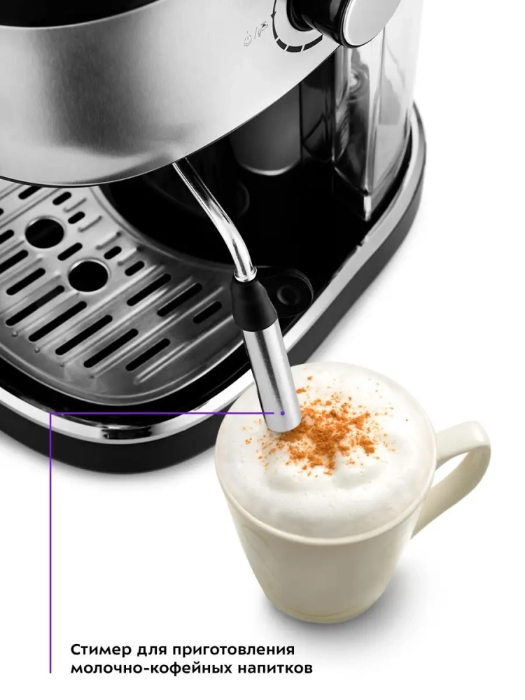 Рожковая кофеварка Китфорт КТ-754 поможет приготовить кофе эспрессо, капучино или латте, а также множество других видов кофейных напитков на ваш вкус. С помощью рожковой кофеварки вы можете подогреть паром остывший чай или молоко. Ключевым отличием рожковой кофеварки от всех остальных кофеварок, турок и прочих кофейных устройств является наличие рожка, его часто называют холдер. Молотый кофе помещается в фильтр рожка, прессуется в таблетку, после чего горячая вода проливается сквозь кофе под давлением. В результате получается кофе без примеси гущи. Этот способ позволяет приготовить напиток, сохранив оригинальный вкус зерен. Еще одно значимое достоинство метода - быстрота приготовления кофе. Молочную пенку для капучино можно делать самостоятельно. Капучинатор в кофеварке - это паровая трубка с насадкой панарелло. Его просто нужно погрузить в холодное молоко. При открытии пара в чашке взбивается густая молочная пена.