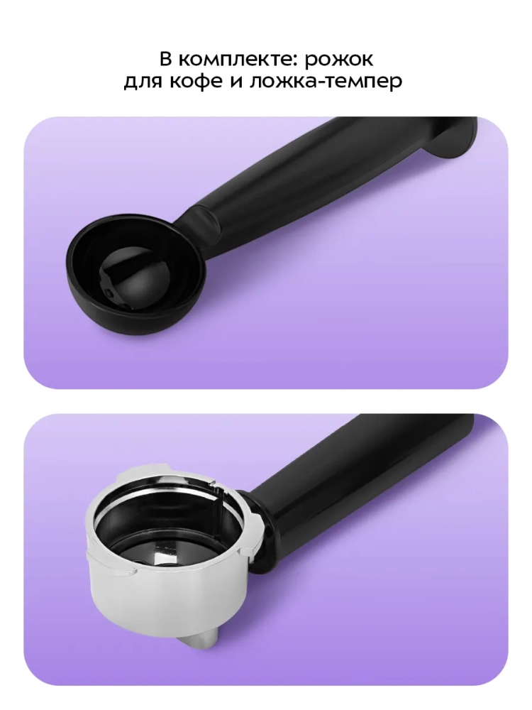 Ключевым отличием рожковой кофеварки от всех остальных кофеварок, турок и прочих кофейных устройств является наличие рожка, который часто называют холдер. Молотый кофе помещается в фильтр рожка и прессуется в таблетку. Процесс трамбовки также называют темперовкой. Правильная темперовка — ювелирный процесс. Если утрамбовать слишком сильно, то воде потребуется гораздо больше времени для прохождения сквозь плотный слой кофе. Вкус напитка будет очень горьким. Если утрамбовать слабо, то вода пройдет сквозь неплотный слой слишком быстро, и вкус кофе будет кислым и водянистым. Мерная ложка-темпер, поставляемая в комплекте, поможет утрамбовать в рожке кофейную таблетку.