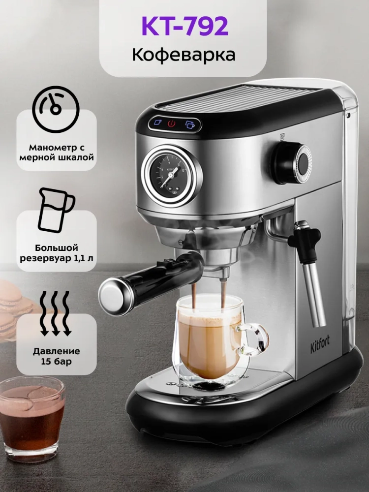 Кофеварка рожковая электрическая КТ-792 - 1450 Вт - 1.1 л