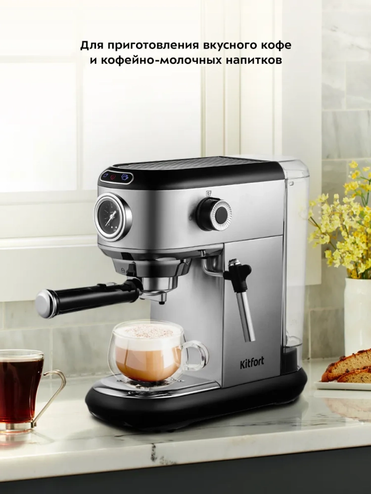 Рожковая кофеварка Китфорт КТ-792 поможет приготовить кофе эспрессо, капучино или латте, а также множество других видов кофе на ваш вкус. С помощью стимера в рожковой кофеварке вы можете подогреть паром остывший чай или молоко.