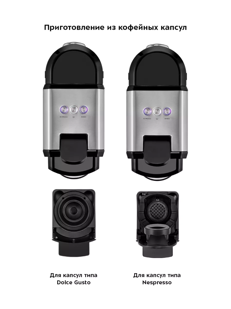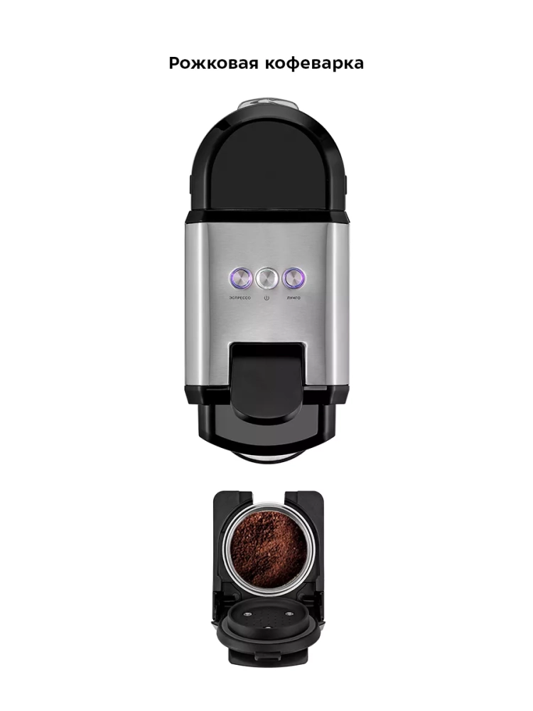 Капсульно-рожковая кофеварка поможет приготовить кофе эспрессо, американо или лунго, а также множество других видов кофе на ваш вкус.