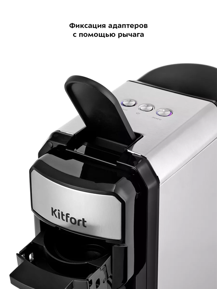 Кофеварка Kitfort КТ-7192 (3 в 1) — многофункциональное устройство, сочетающее в себе функции капсульной и рожковой кофеварки. Благодаря адаптерам кофеварка подходит для капсул типа Nespresso и Dolce Gusto, а также для молотого кофе.