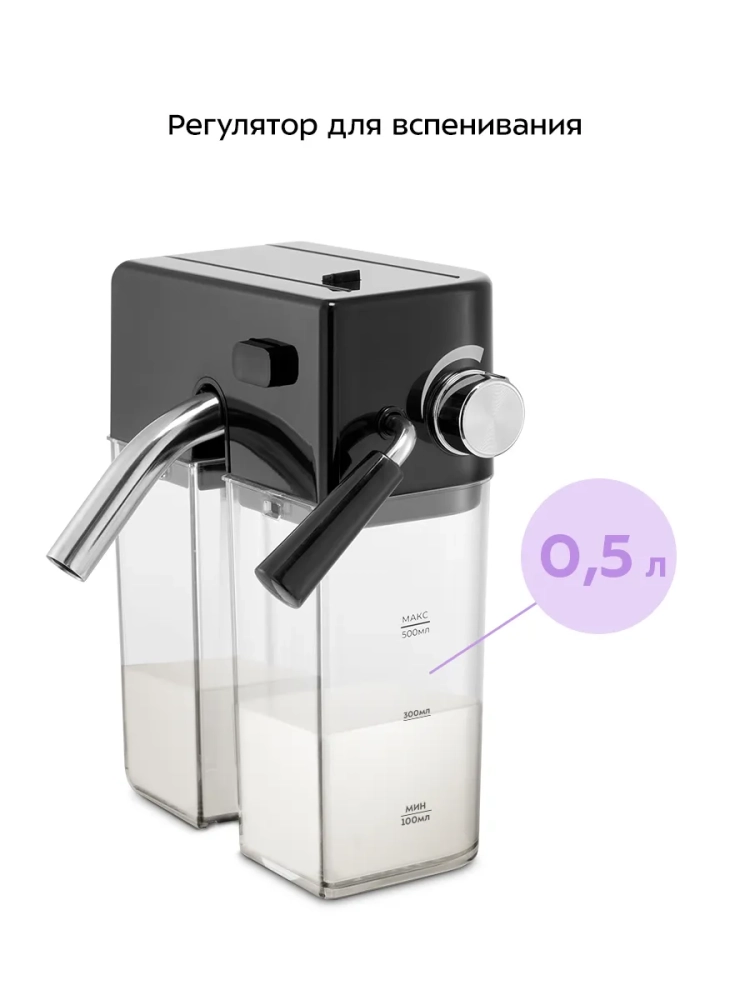 С помощью автоматического капучинатора вы можете вспенить молоко, приготовить капучино или латте. Автоматический капучинатор в кофеварке представляет собой резервуар для молока, а также механизм вспенивания с трубкой забора молока и трубкой подачи пены. При включении приготовления капучино или латте кофеварка автоматически взобьет молочную пену и подаст ее в чашку, а затем приготовит кофе. При нажатии на кнопку «Пенка» прибор автоматически взобьет пенку без приготовления кофе.
