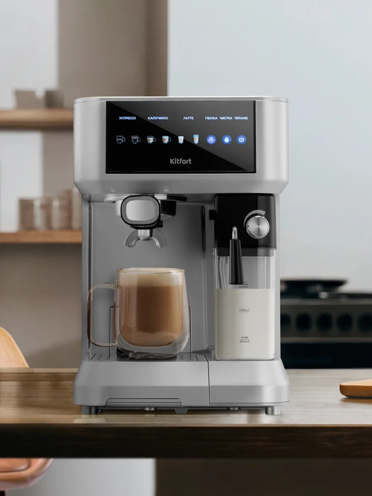 Кофеварка Kitfort КТ-7545 поможет приготовить кофе эспрессо, капучино или латте.