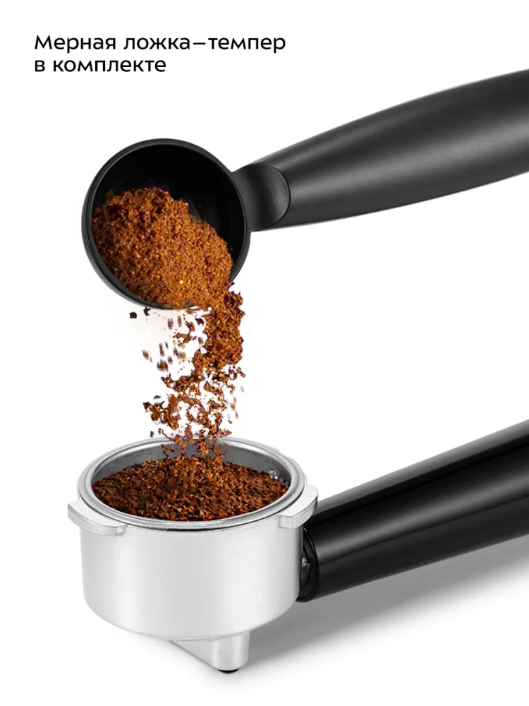 Ключевым отличием рожковой кофеварки от всех остальных кофеварок, турок и прочих кофейных устройств является наличие рожка, его часто называют холдер. Молотый кофе помещается в фильтр рожка и прессуется в таблетку. Процесс трамбовки также называют темперовкой. Правильная темперовка — ювелирный процесс. Мерная ложка-темпер поможет утрамбовать в рожке кофейную таблетку.