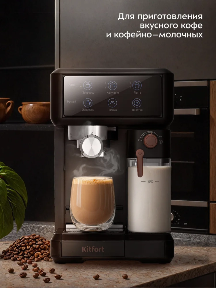 Кофеварка Kitfort КТ-7554 поможет приготовить кофе эспрессо, капучино или латте, а также множество других видов кофе на ваш вкус.