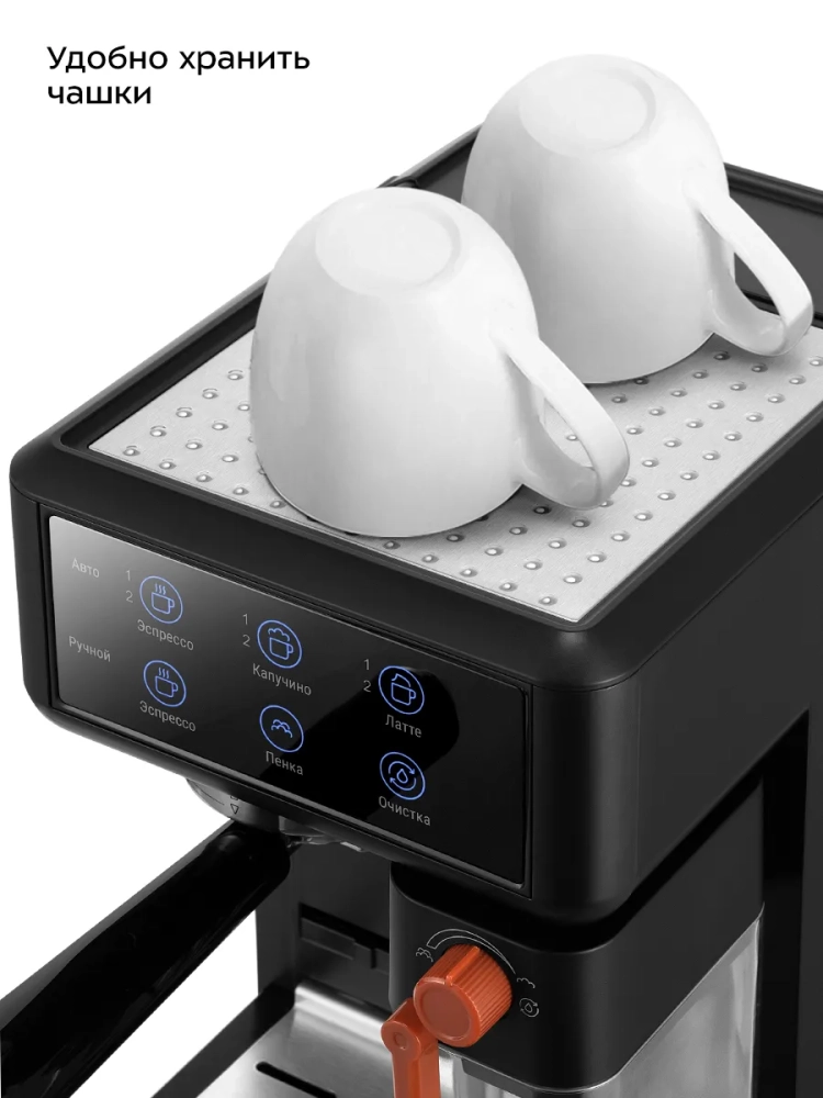 Металлические фильтры с лазерным нанесением отверстий долговечны и не требуют использования каких-либо расходующихся частей. Кофеварка оснащена съемным резервуаром для воды и металлическим рожком. Металлический рожок хорошо прогревается и поддерживает температуру проходящей воды, сам напиток получается насыщенным, густым и с хорошей пенкой.