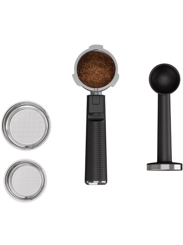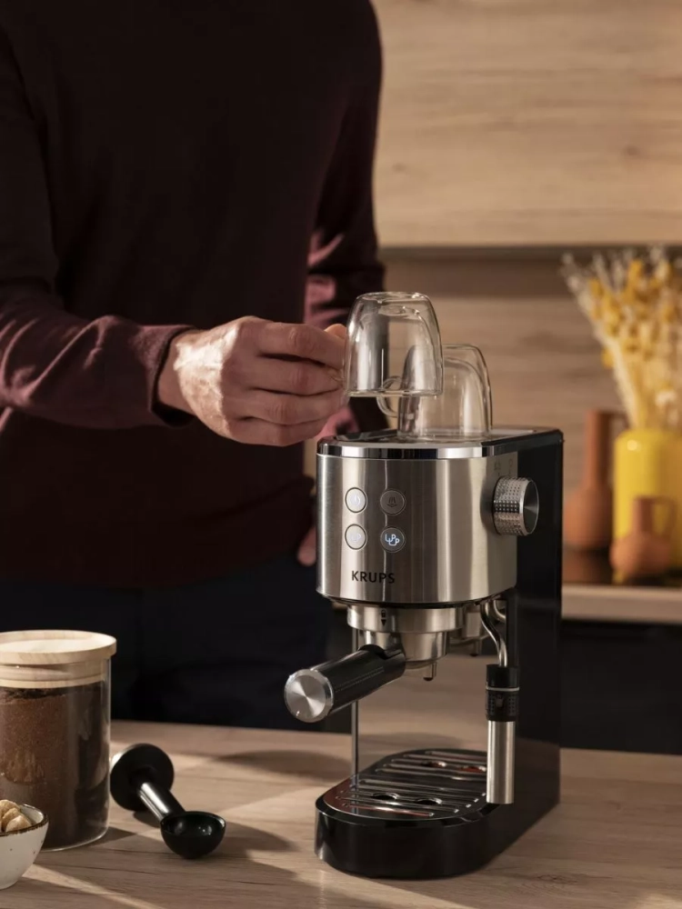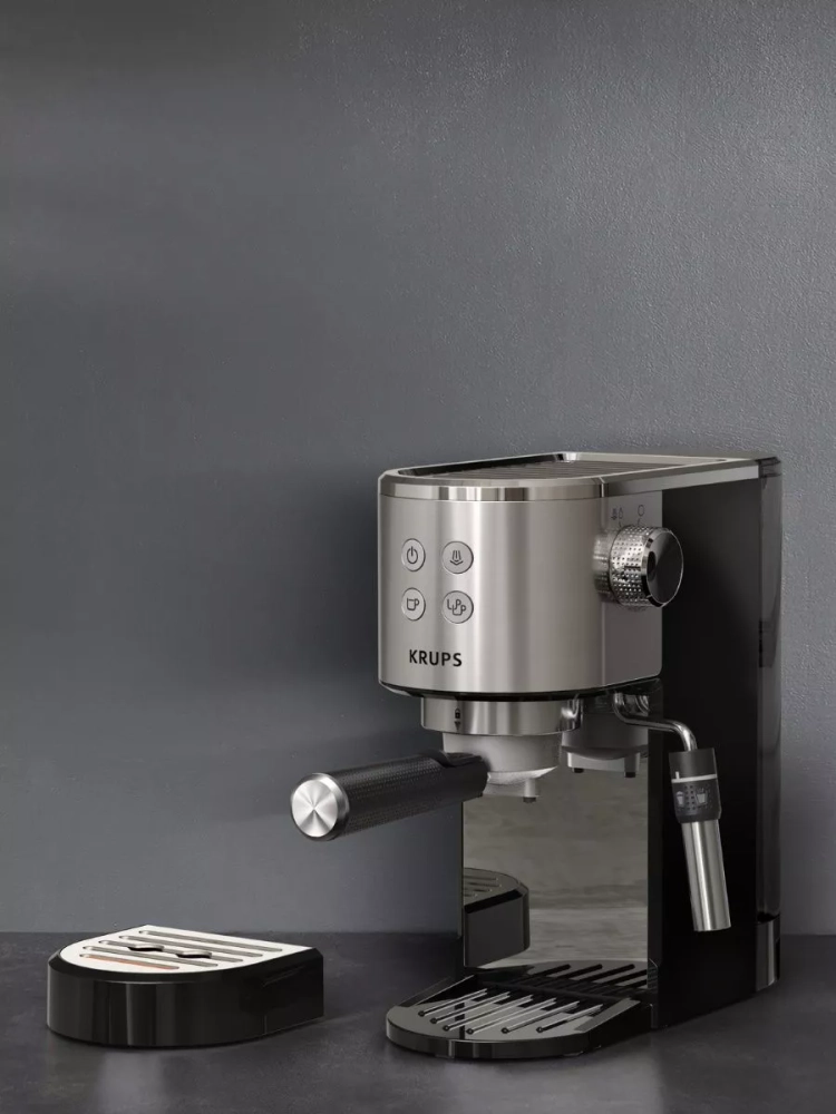 Специальная защёлка на держателе фильтра способствует легкому извлечению кофейной гущи из рожка, а съемный поддон для капель из нержавеющей стали обеспечивает простое обслуживание и очистку. Почувствуй себя бариста вместе с рожковой кофеваркой Krups Virtuoso+!