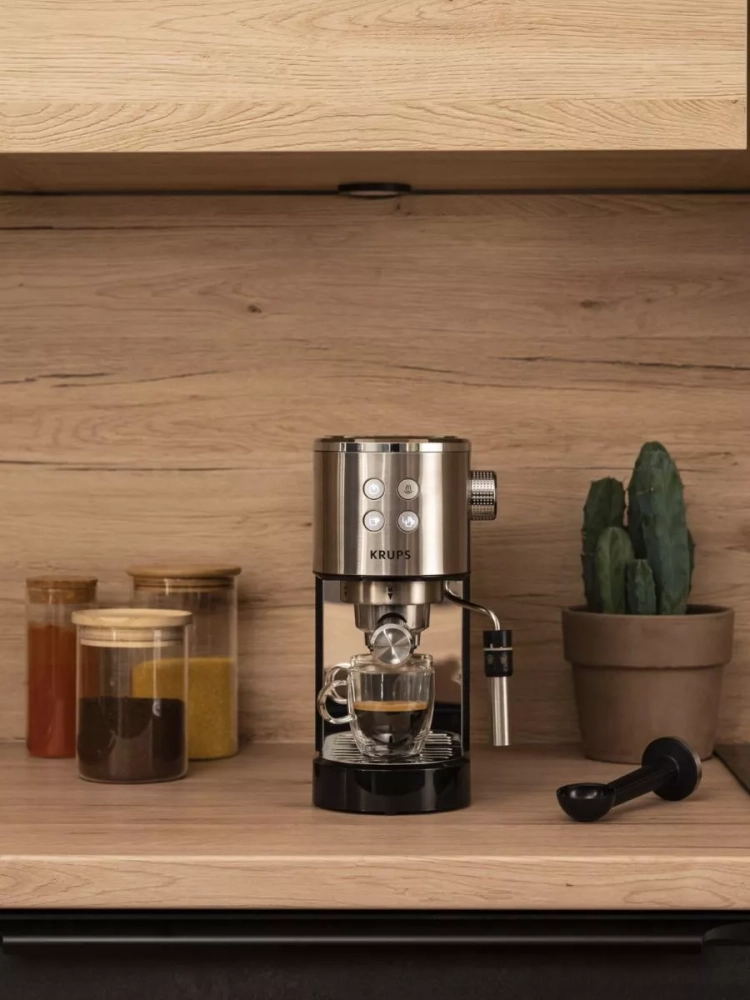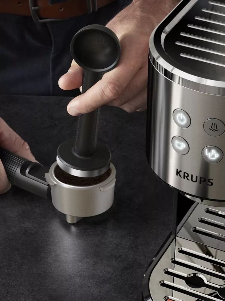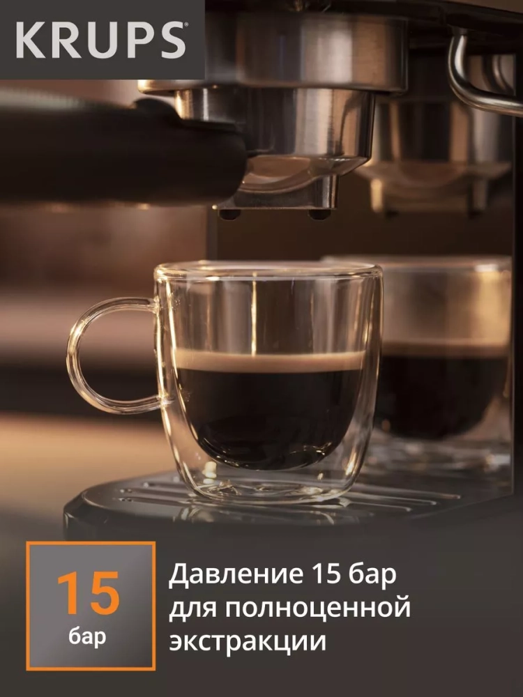 Рожковая кофеварка Krups Virtuoso+ XP444C10 — ваш новый помощник в приготовлении эспрессо!Кофеварка станет вашим проводником в мир идеального домашнего эспрессо профессионального качества. Интуитивно понятная панель управления и автоматическая остановка подачи воды помогут вам почувствовать себя настоящим бариста, не выходя из дома.