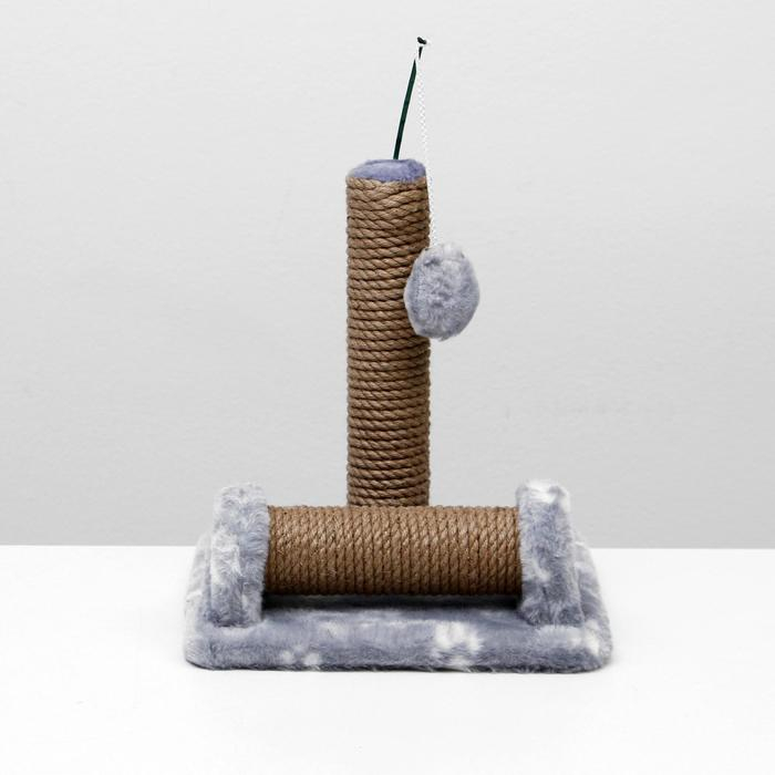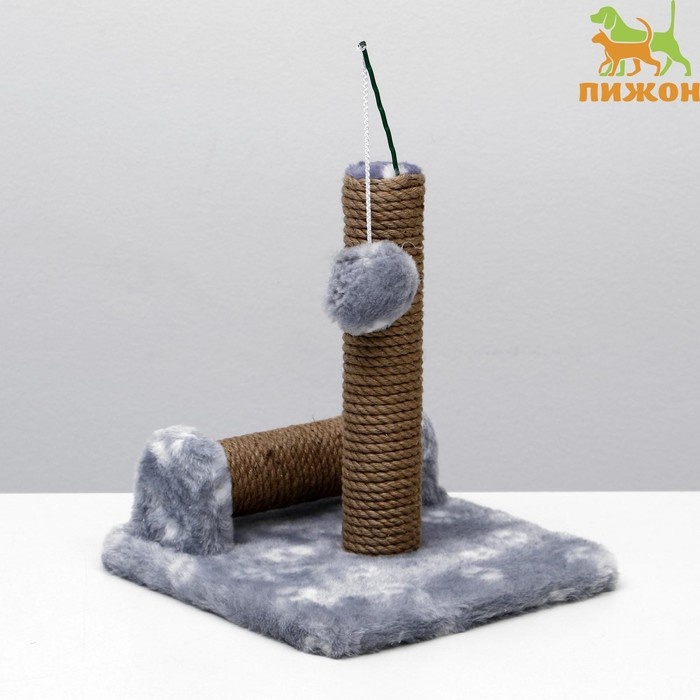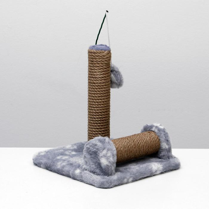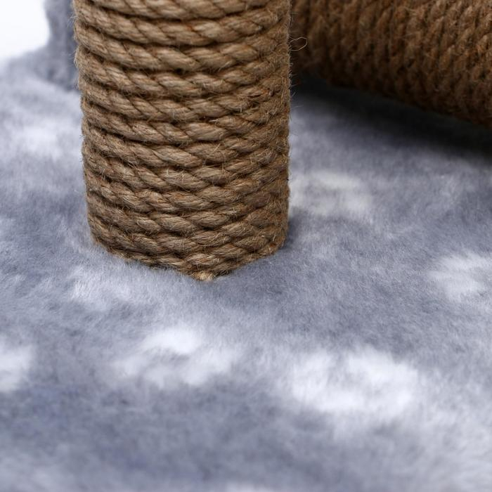 Когтеточка двойная для котят на подставке, джут, 30 х 28 х 32 см, серая с лапками