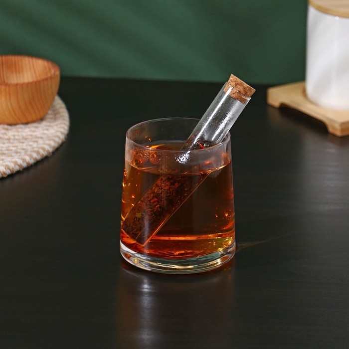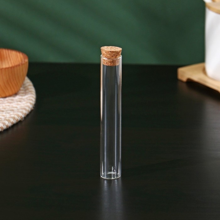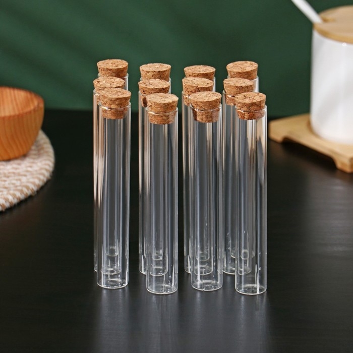 Колба стеклянная для заваривания с пробкой из бамбука «Алхимия», 2×12 см, набор, 12 шт