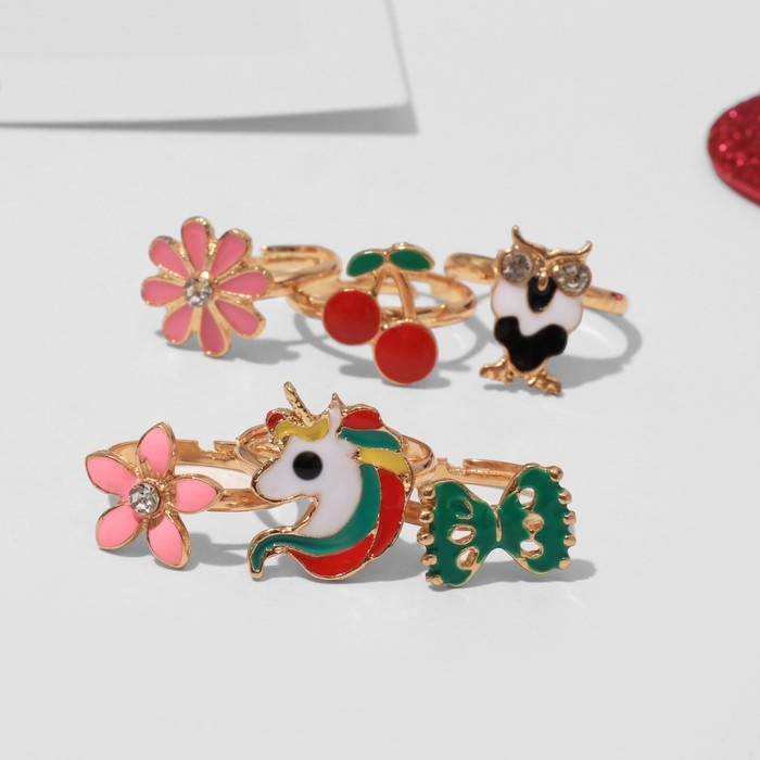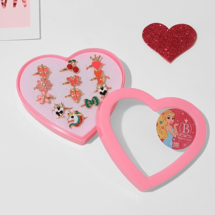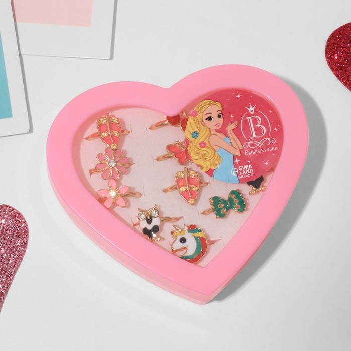 Кольца детские набор 12шт «Выбражулька» яркие краски, форма МИКС, цвет МИКС в золоте, б-р