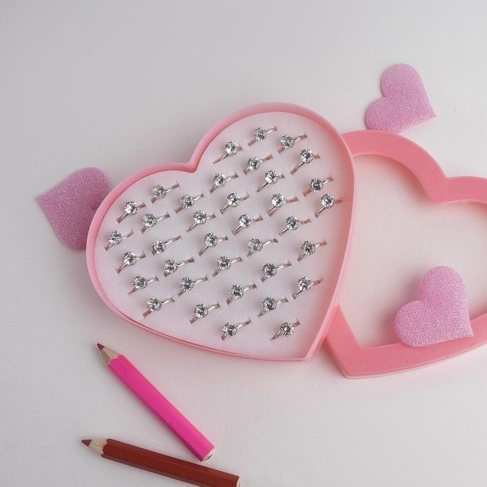 Кольца детские набор 36 шт. «Выбражулька» бриллиант, как у мамы, цвет белый в серебре
