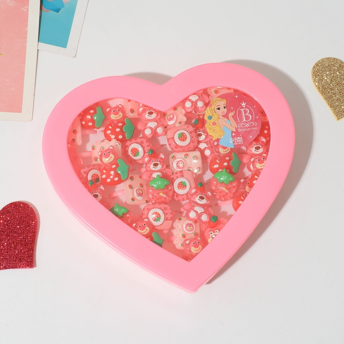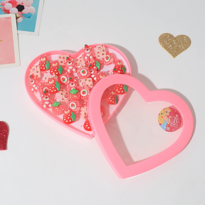 Кольца детские набор 36шт «Выбражулька» земляничка, форма МИКС, цвет бело-розовый, б-р