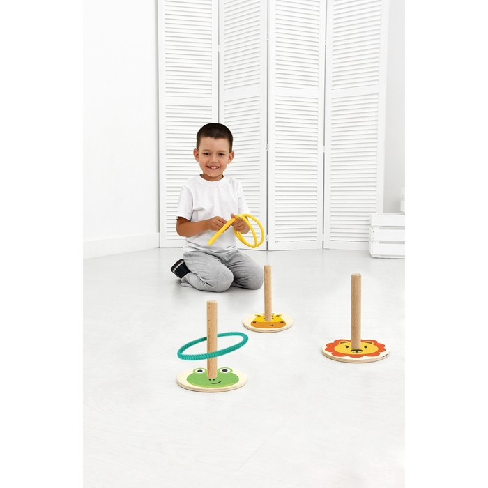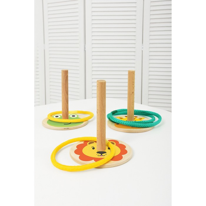 Набор деревянных кольцебросов «Животные» — это прекрасный способ провести время с удовольствием и пользой для детей и взрослых! Игра помогает развить меткость, ловкость, координацию движений, глазомер и общую моторику.