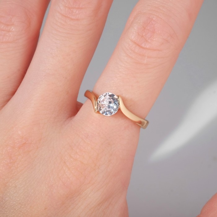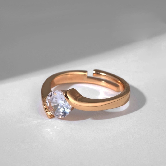 Кольцо «Классика» кристалл круг, цвет белый в золоте, безразмерное