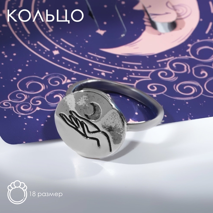 Кольцо «Луна» над рукой, цвет серебро, 18 размер