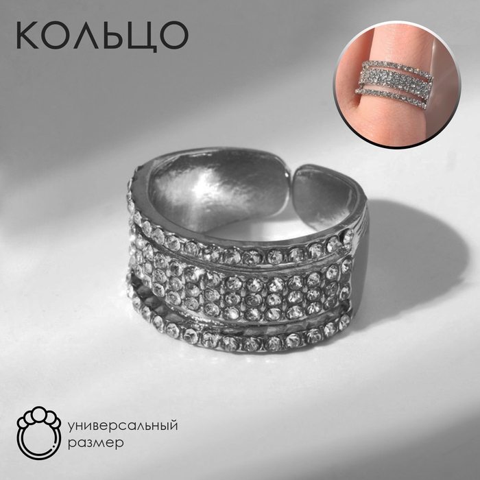 Кольцо «Минимал» разделение, цвет белый в серебре, безразмерное