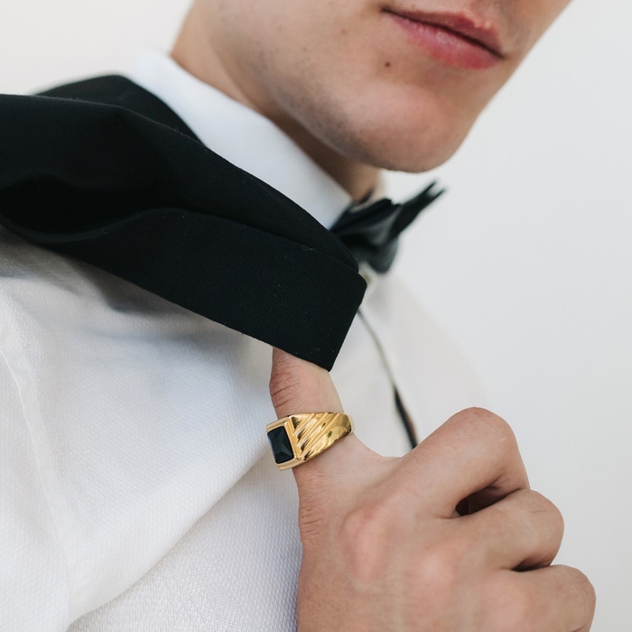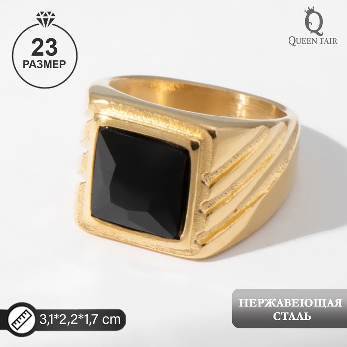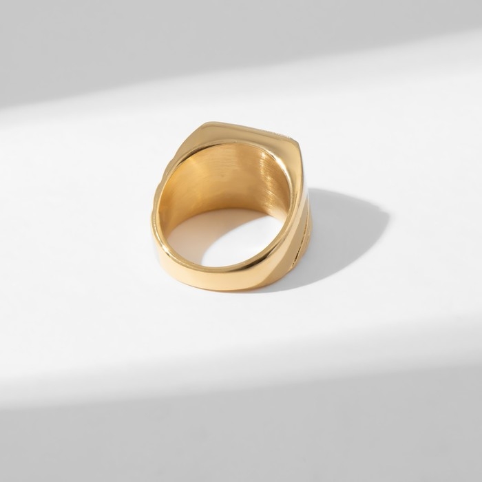 Кольцо мужское «Перстень» рельеф, цвет чёрный в золоте, 23 размер