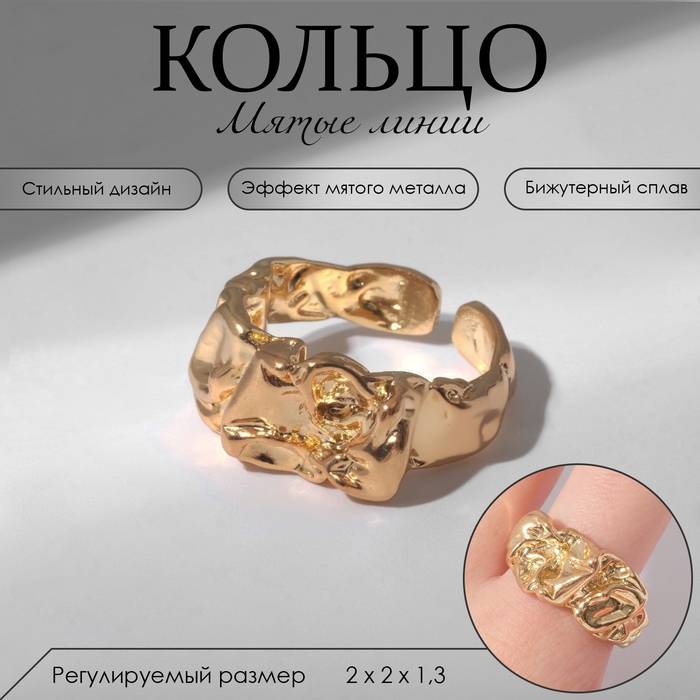 Кольцо «Мятые линии» минимал, цвет золото, безразмерное