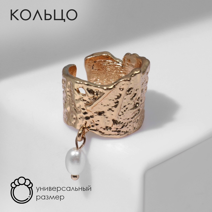 Кольцо «Мятые линии» с бусиной, цвет белый в золоте, безразмерное