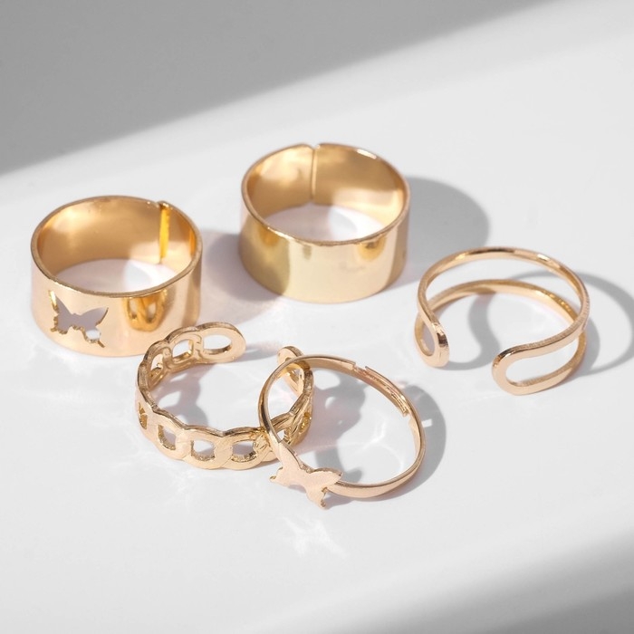 Кольцо набор 5 штук «Минимализм», размер МИКС, цвет золото