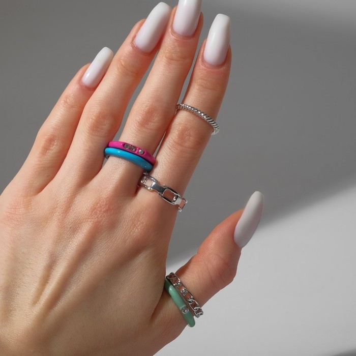 Кольцо набор 3 штуки «Формы», цвет белый, синий, зелёный, безразмерные