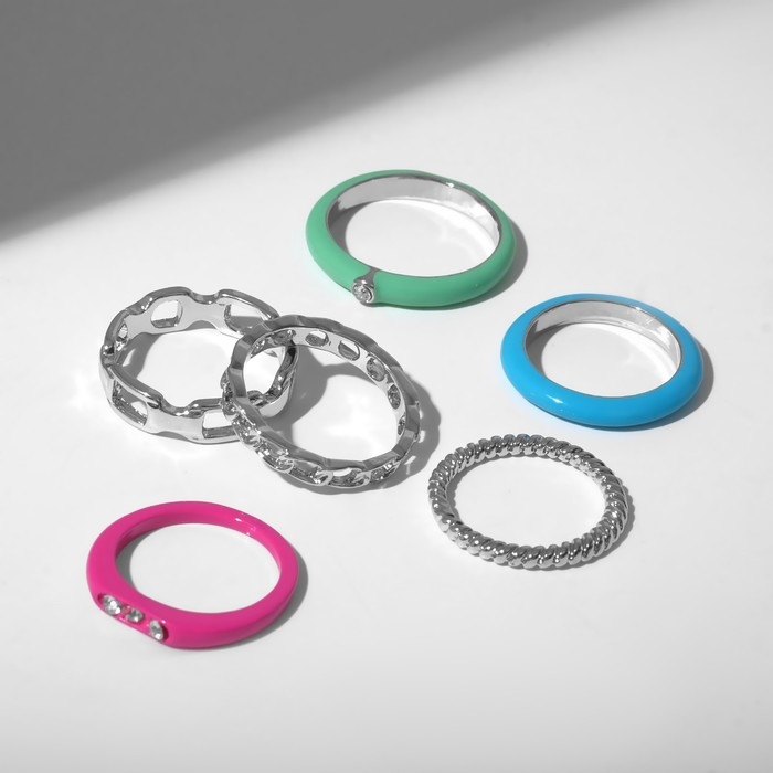 Кольцо набор 6 штук «Мечта» сияние, цветной с серебром, размер МИКС