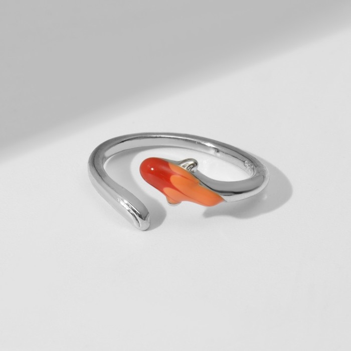Кольцо «Рыбка» хвостиком, безразмерное, цвет красный в серебре
