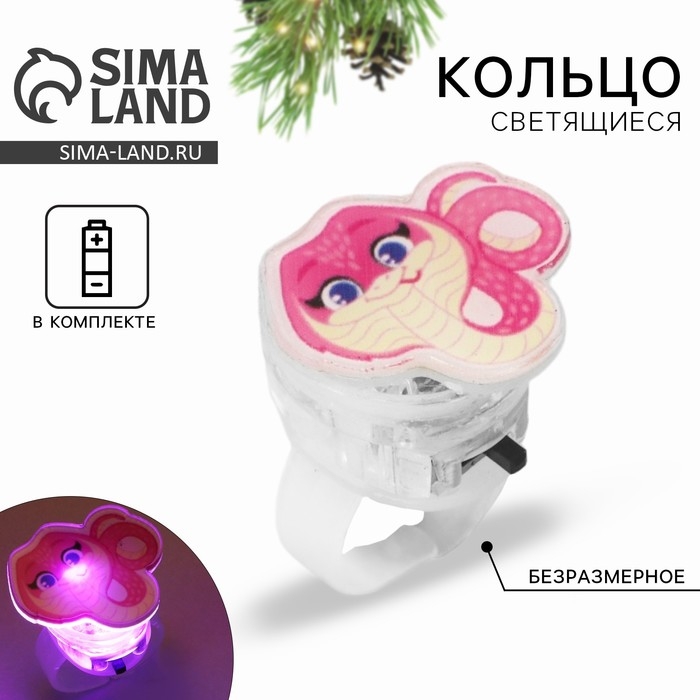 Кольцо с огоньком новогоднее «Милая змейка», на Новый год, 3 х 3 х 3 см