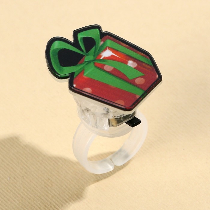 Кольцо с огоньком новогоднее «Подарок», на Новый год, 3 х 3 х 3 см