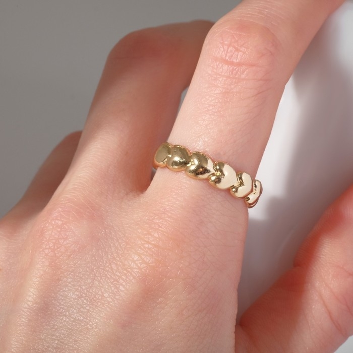 Кольцо «Сердечки» ряд, цвет золото, безразмерное