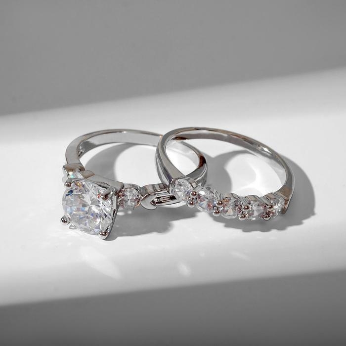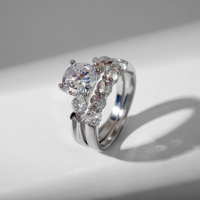 Кольцо "Сокровище" кристалл куб, цвет белый в серебре, размер 19