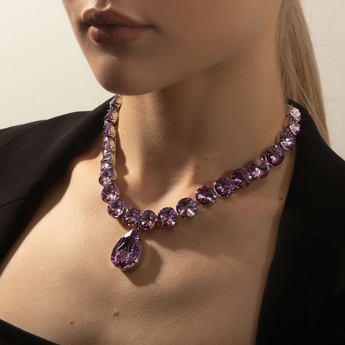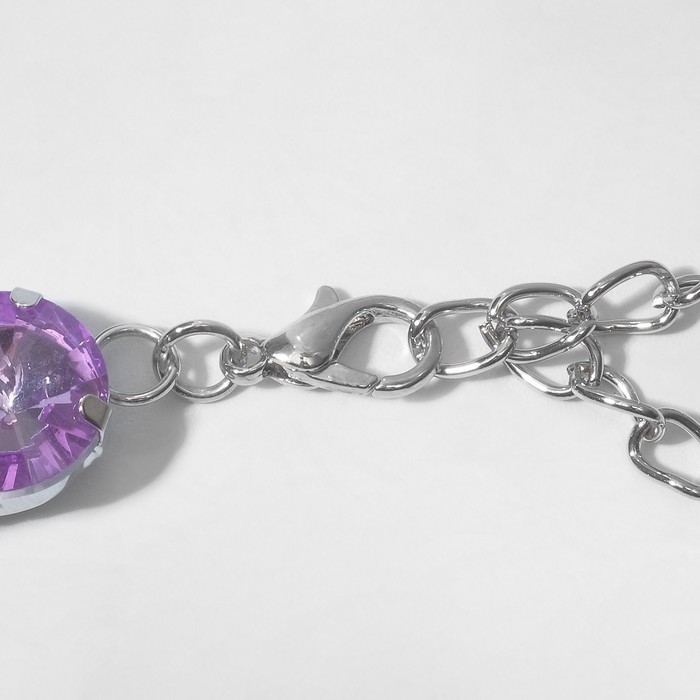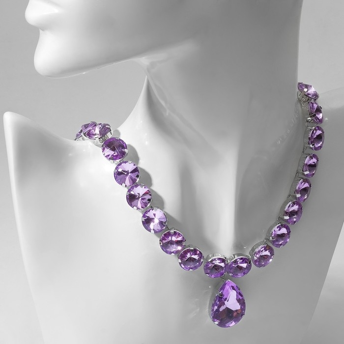 Колье «Драгоценность» капля, цвет сиреневый в серебре, 32 см