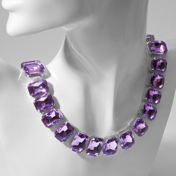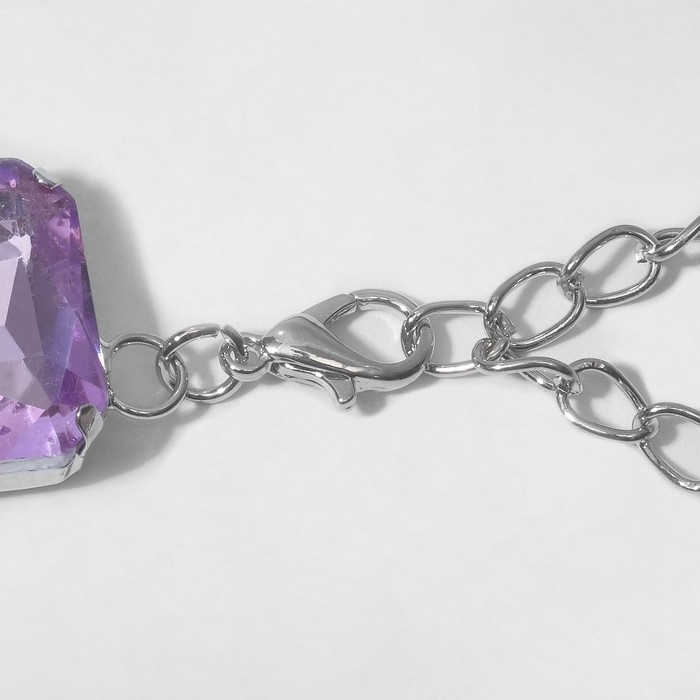 Колье «Драгоценность» прямоугольники, цвет сиреневый в серебре, 32 см