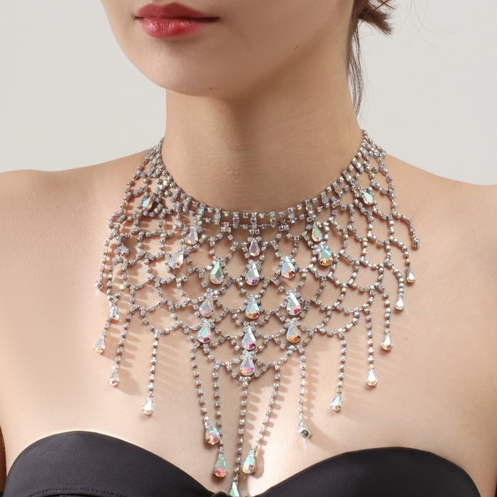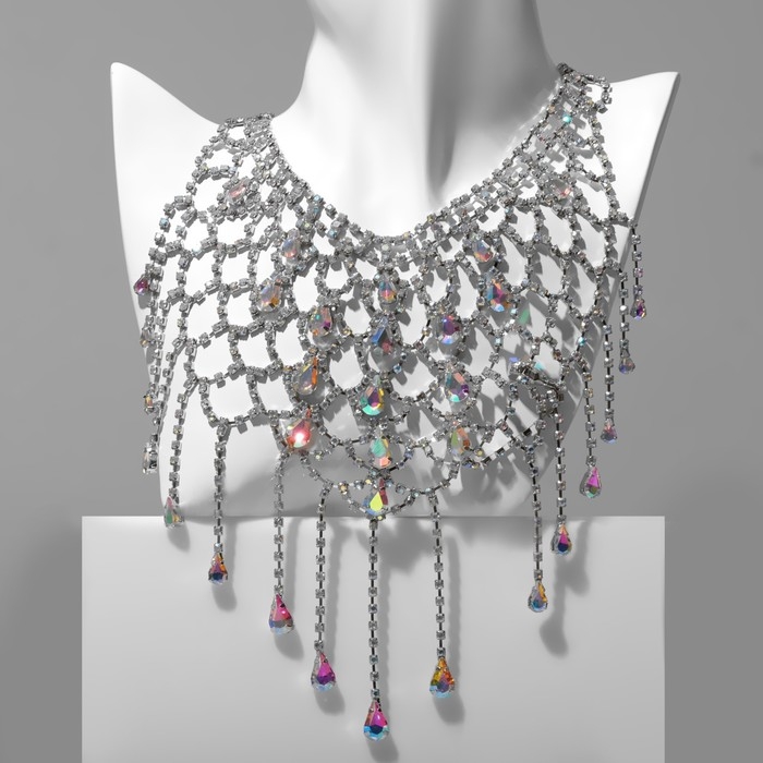 Колье «Лёд» сетка, цвет белый в серебре, 40 см