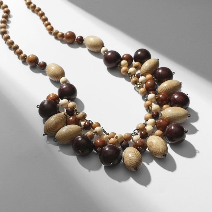 Колье «Вдохновение» шар №12,14, цвет бело-бежевый в золоте, L=50 см