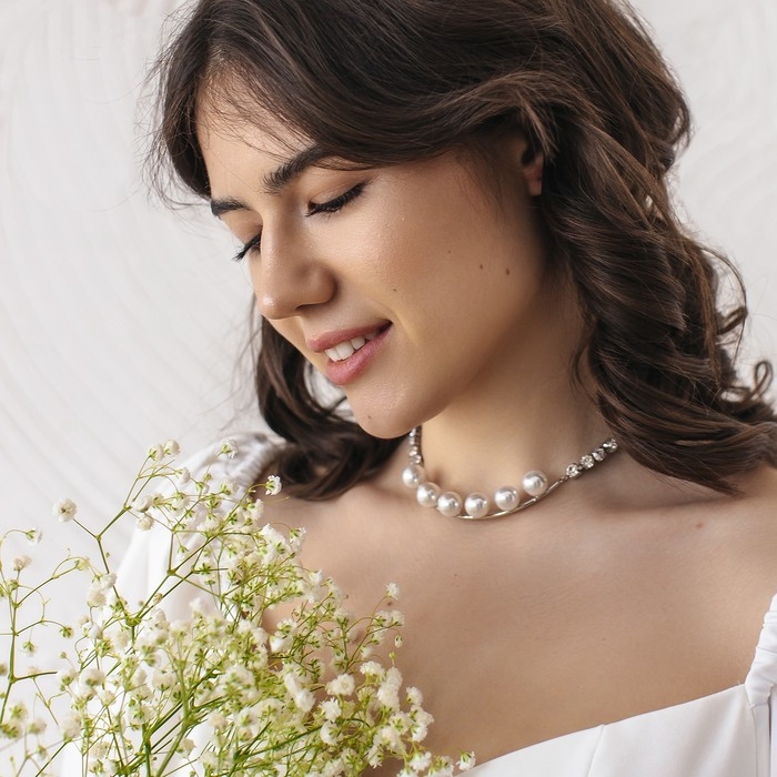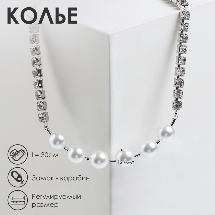 Колье «Жемчужная роскошь» шар №12, цвет белый в серебре, L=30 см