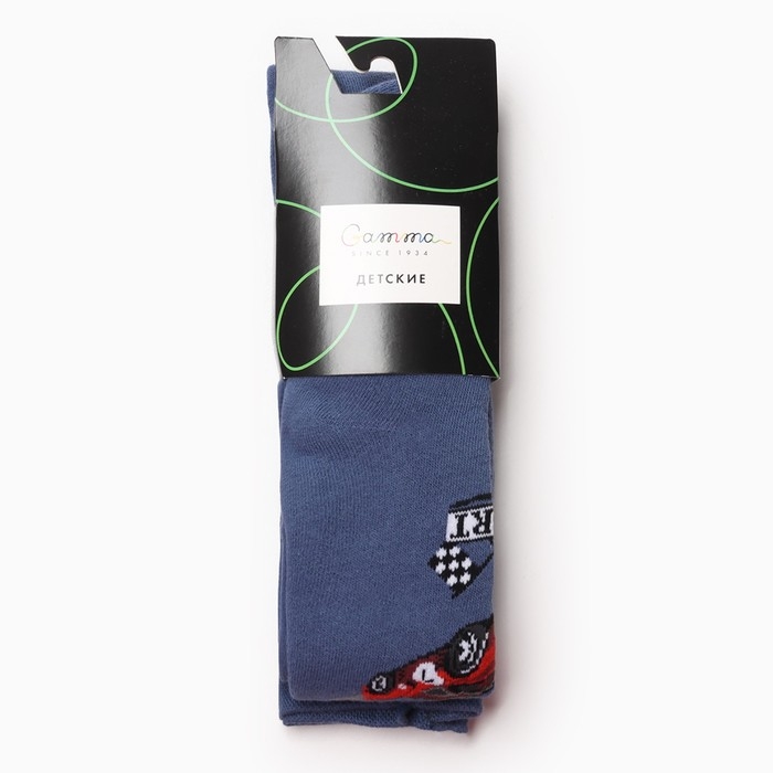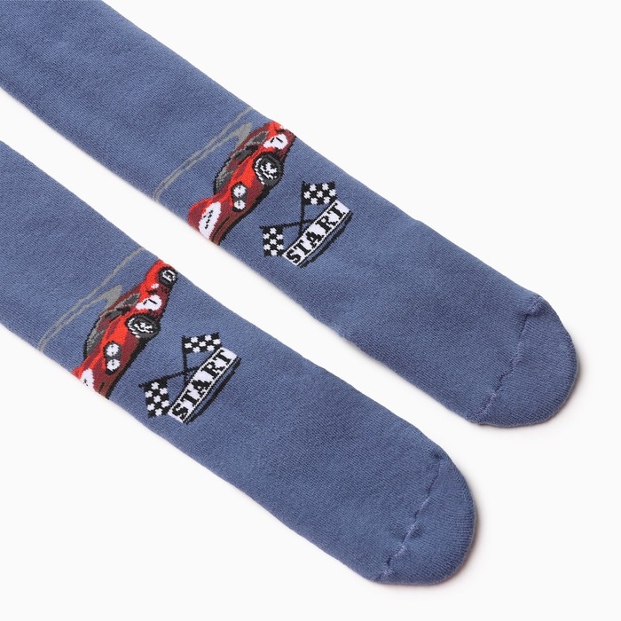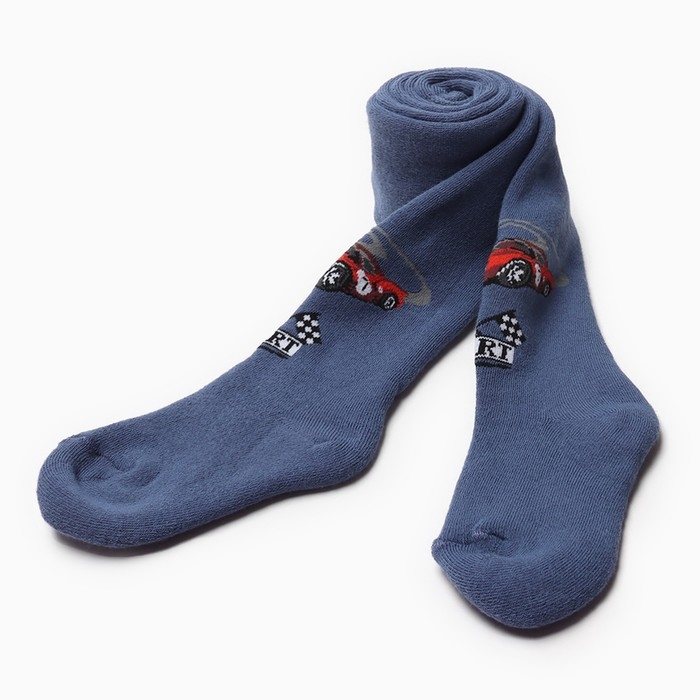 Колготки детские махровые «Гоночная машина» цвет деним, рост 98-104